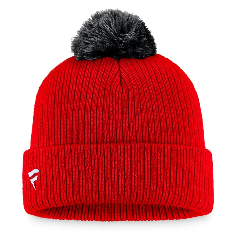 Miesten punainen Fanatics Chicago Blackhawks -joukkueen neulepipo tupsulla, hihansuussa hihansuussa
