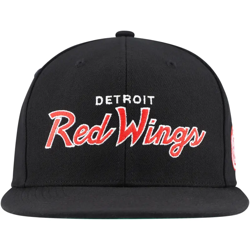 Miesten Mitchell & Ness musta Detroit Red Wings Core Team Script 2.0 Snapback -lippis