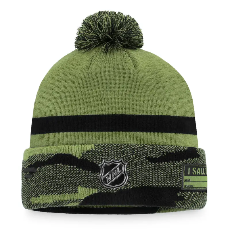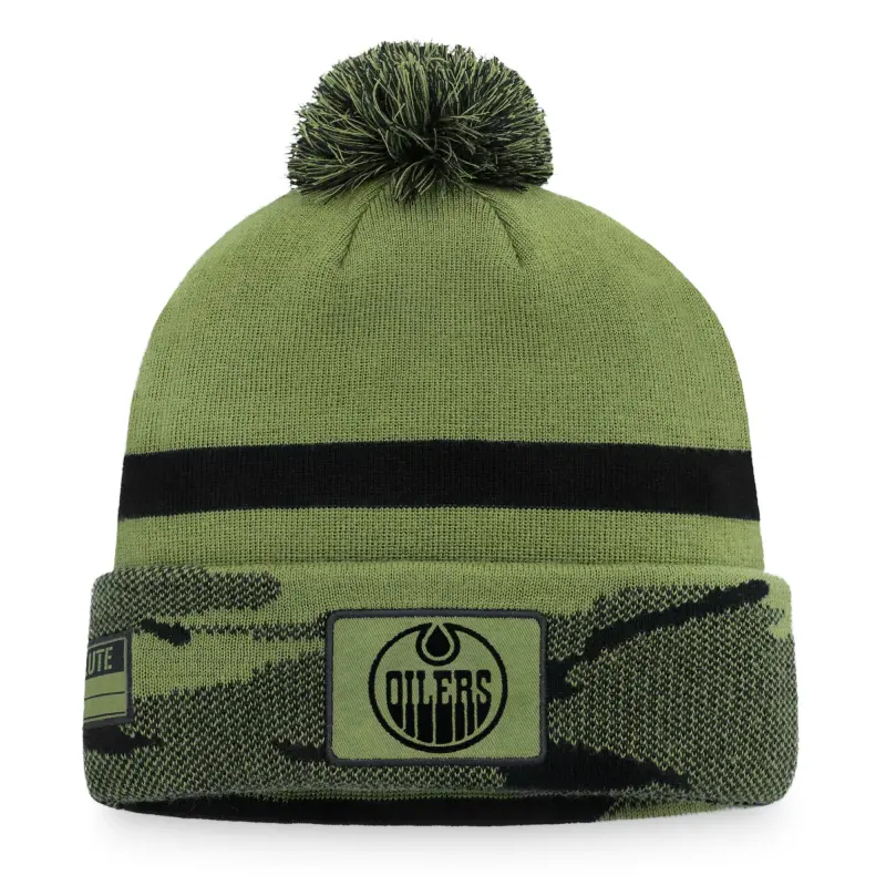 Miesten Fanatics Camo Edmonton Oilers -merkkinen Military Appreciation -neulepipo tupsulla