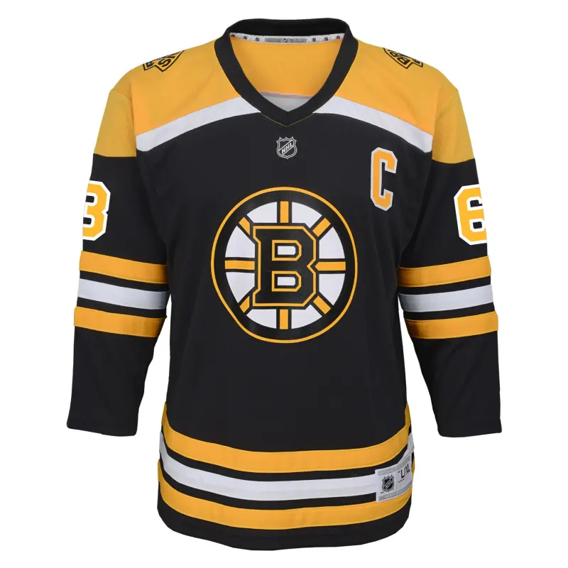 Boston Bruinsin David Pastrnakin kotipelipaita, nuori, Premier-tason pelaaja, musta
