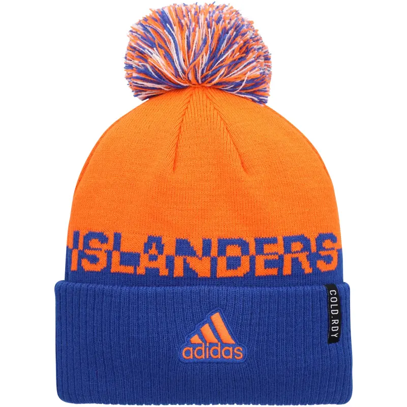 Miesten adidas Orange/Royal New York Islanders COLD.RDY -neulepipo tupsulla, hihansuussa resorikuvio