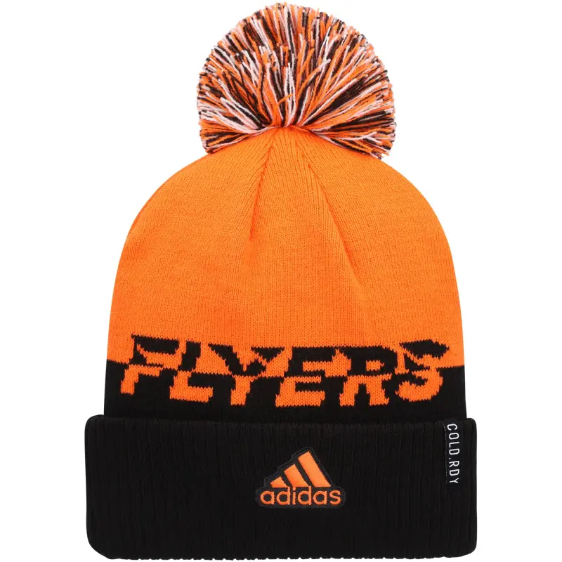 Miesten adidas oranssi/musta Philadelphia Flyers COLD.RDY hihansuussa oleva neulepipo tupsulla