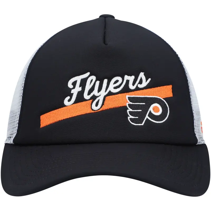 Naisten adidas musta/valkoinen Philadelphia Flyers Foam Trucker Snapback -lippis