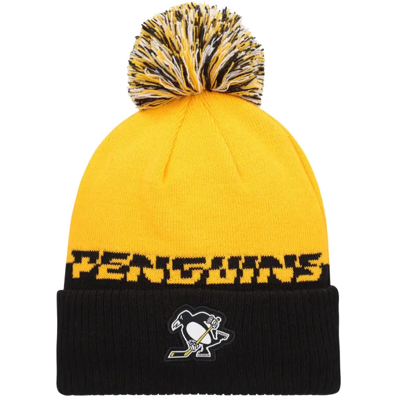 Miesten adidas keltainen/musta Pittsburgh Penguins COLD.RDY -neulepipo tupsulla, hihansuussa hihansuussa