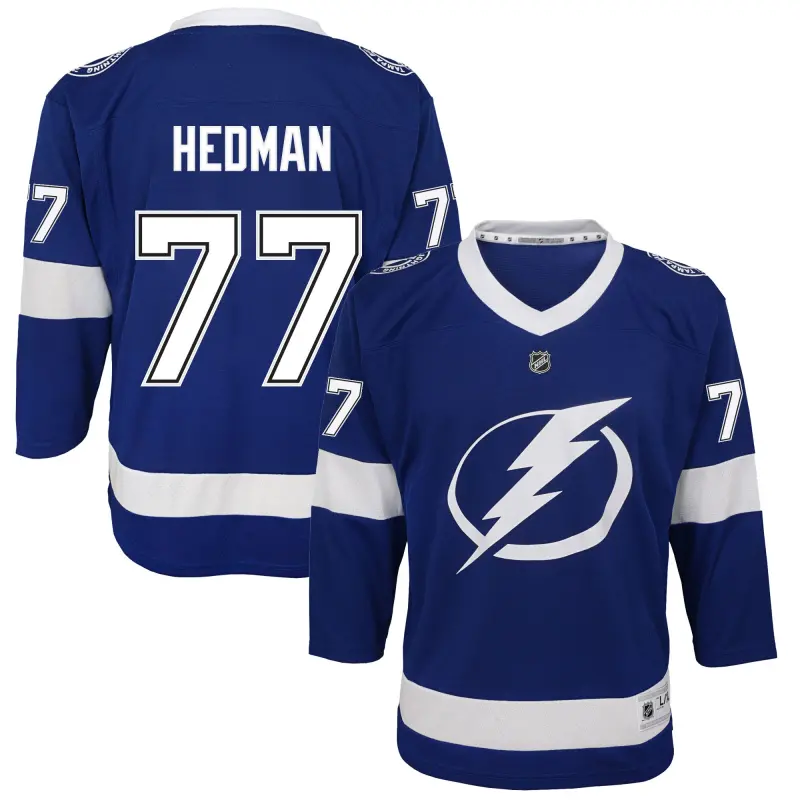 Tampa Bay Lightningin Victor Hedmanin kotipelipaita, sininen, Premier-tyyliin.