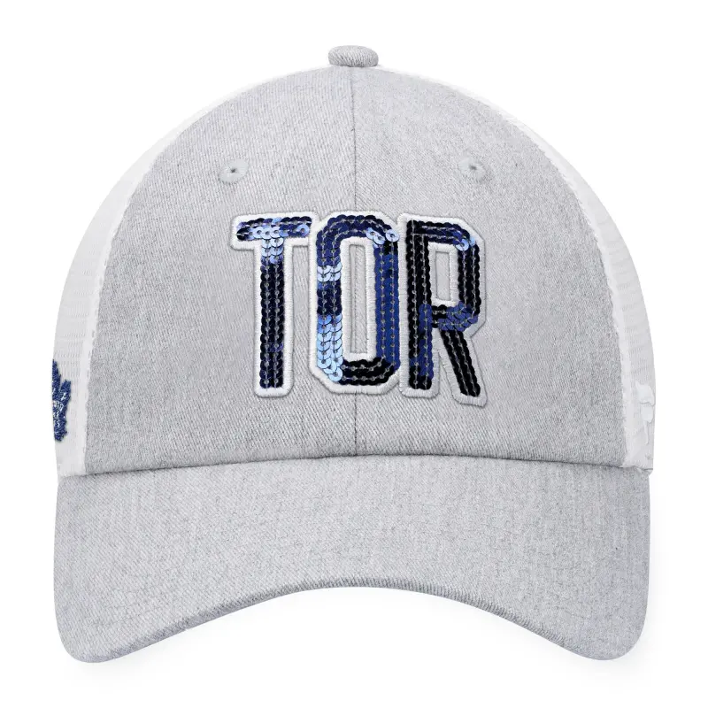 Naisten Fanatics Heather Grey/White Toronto Maple Leafs Iconic Glimmer Trucker Snapback -lippis