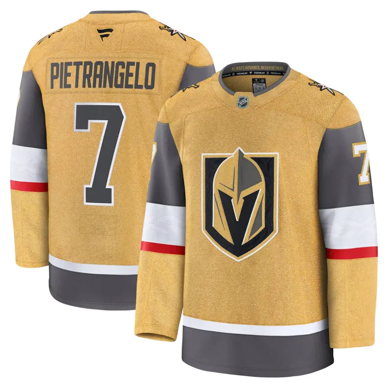 Vegas Golden Knights Fanatics Branded -kolmiopelipaita Premium – Miesten – Kulta – Alex Pietrangelo