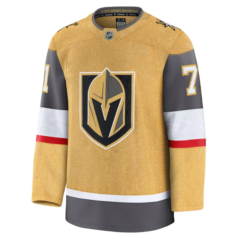 Vegas Golden Knights Fanatics Branded -kotipelipaita Premium – Miesten – Kulta – Jack Eichel