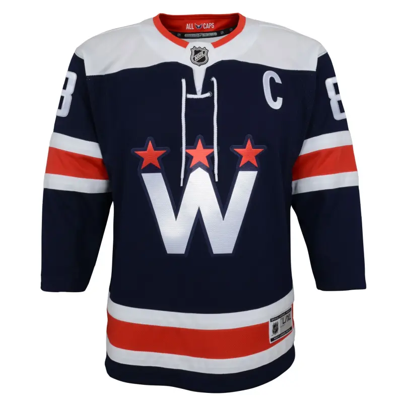 Washington Capitals Alexander Ovechkinin pelipaita kaudelle 2020/21 ja sen varajäsenelle.