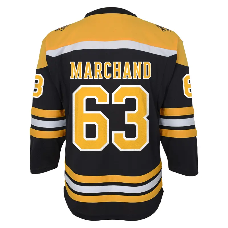 • Please Note: This product ships directly from the USA. Your young fan is always tuned in to the action when the Boston Bruins take the ice. Be sure your kiddo is outfitted properly by grabbing them this Brad Marchand Home Replica Player jersey. The classic Boston Bruins design and crisp team graphics will keep your youngster looking their best as they cheer the squad to victory.