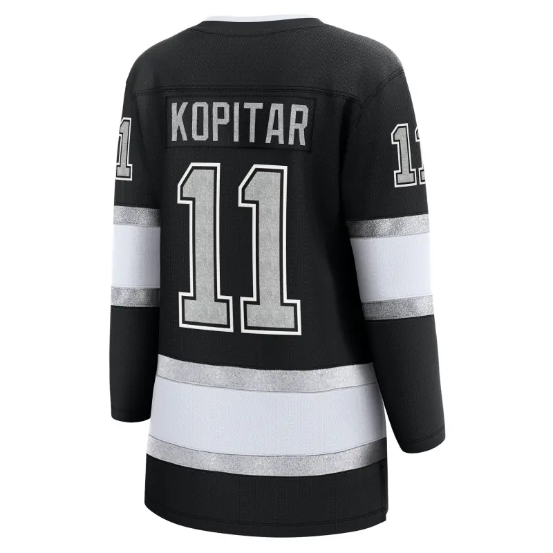Home / Shop / Los Angeles Kings / Los Angeles Kingsin Anze Kopitar -pelipaita, jossa irtonumero ja musta kotipelipaita.