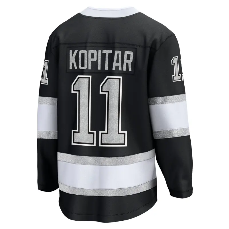 Home / Shop / Los Angeles Kings / Los Angeles Kingsin Anze Kopitar -pelipaita, jossa irtonumero ja musta kotipelipaita.
