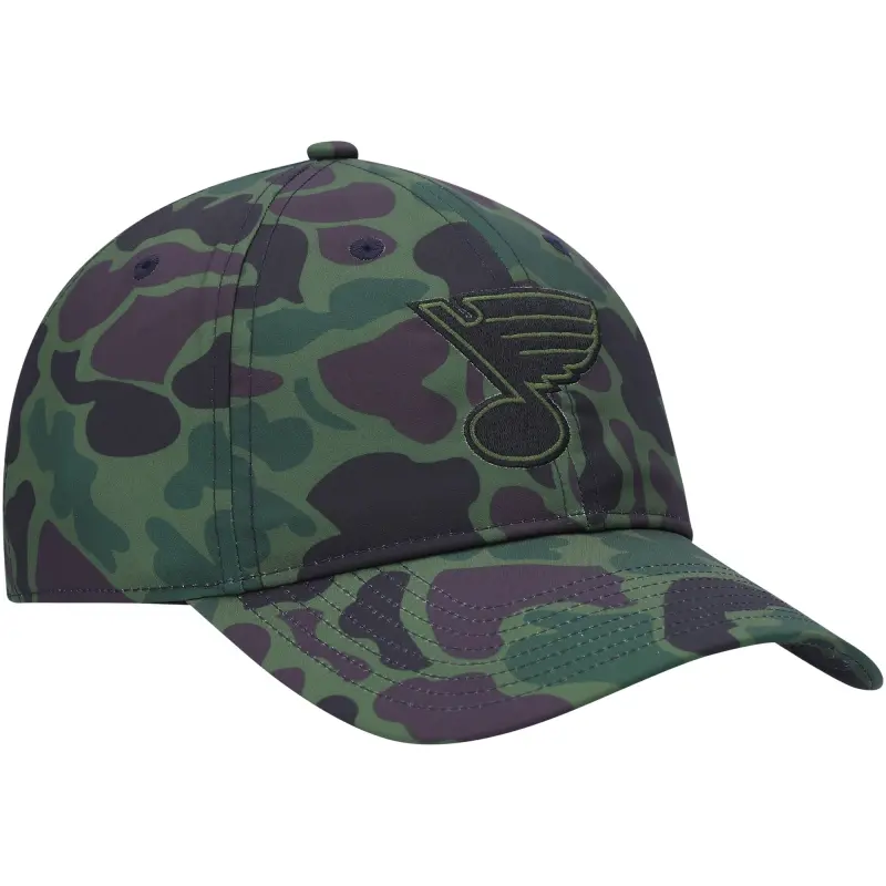 • Please Note: This product ships directly from the USA. Switch out your usual St. Louis Blues look for this Locker Room Slouch hat from adidas. It features the St. Louis Blues logo in dark colors matching the camo design. Plus, the adjustable strap easily slides into your ideal fit.