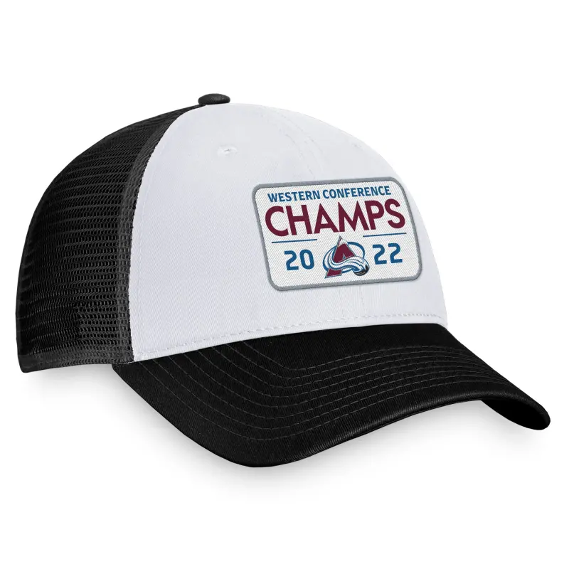 Home / Shop / Colorado Avalanche / Miesten Fanatics Musta Colorado Avalanche 2022 Western Conference Champions Locker Room Trucker Säädettävä Lippis