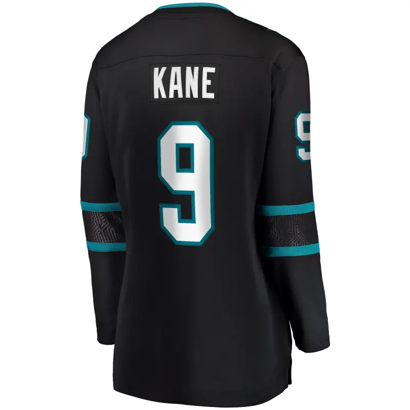 Naisten Fanatics Evander Kane San Jose Sharks -pelipaita, jossa irtonumero ja musta.